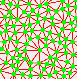 A Delaunay simplex is the dual of the Voronoi diagram. Delaunay simplexes were developed by Борис Николаевич Делоне. In two-dimensions it is more commonly known as Delaunay triangulation, and in three-dimensions , as Delaunay tetrahedralisation.