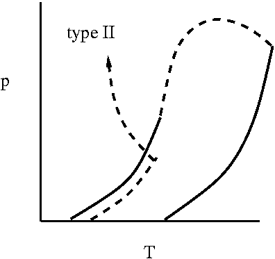 Schematic sketch of a type II binary phase diagram