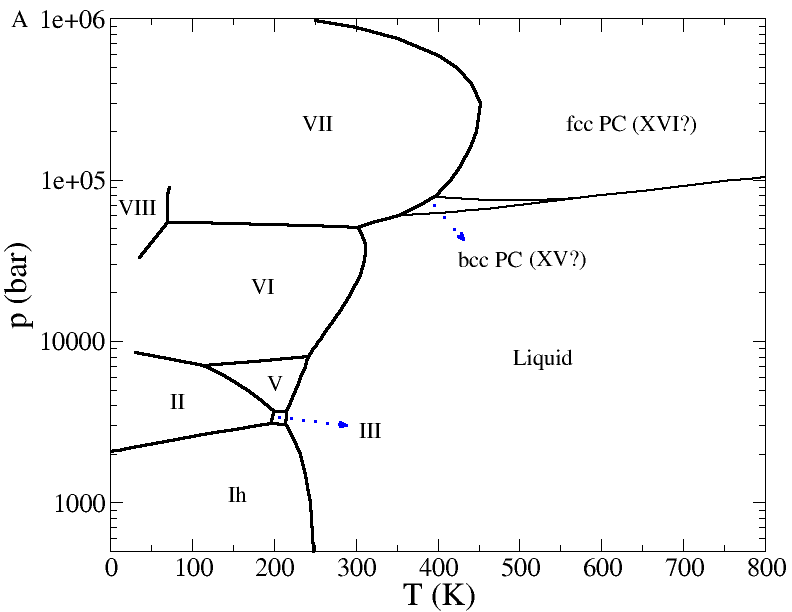 | current | 14:15, 7 July 2009 | 792 × 612 (11 KB) | Carl McBride (talk | contribs) | Computer simulation phase diagram of the TIP4P/2005 water model from the publication [http://dx.doi.org/10.1063/1.3156856 J. L. Aragones and C. Vega "Plastic crystal phases of simple water models", Journal of Chemical Physics '''130''' 244504 (200 |
