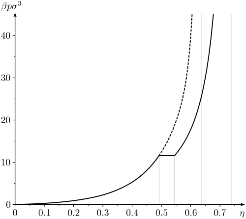 | 11:45, 15 August 2012 | Hard-sphere phase diagram pressure vs packing fraction.png (file) | 14 KB | Franzl aus tirol | Phase diagram of hard sphere system (Solid line - stable branch, dashed line - metastable branch): Reduced pressure <math>\beta P\sigma^3</math> as a function of the volume fraction (or packing fraction) <math>\eta</math>. With inverse thermal energy <ma | 1 | |